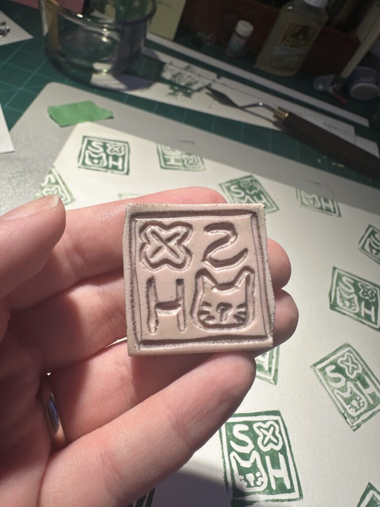 To the left, you will see my final logo design, deeply inspired by Japanese hanko, or personal stamps that are used in place of a signature on legal and business documents. I do not have any Japanese heritage, but I feel really inspired by Japanese culture and wanted to take the concept of a hanko and make it my own, as you see here.