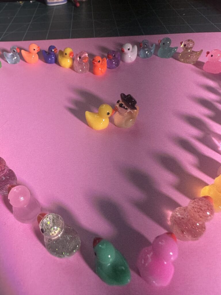 Over the last 2.5 years of placing ducks, there have been a handful of special events and moments that defined the presence the ducks have had. In 2024, I won a Micro Grant of $500, which supported duck-themed events, purchasing ducks, and creating duck-themed merchandise for students who were fans of What the duckduck. The theme of ducks has also been present in my work quite a bit, as its overall brand has defined my style with this sustained commitment to sharing this small symbol of fun.
