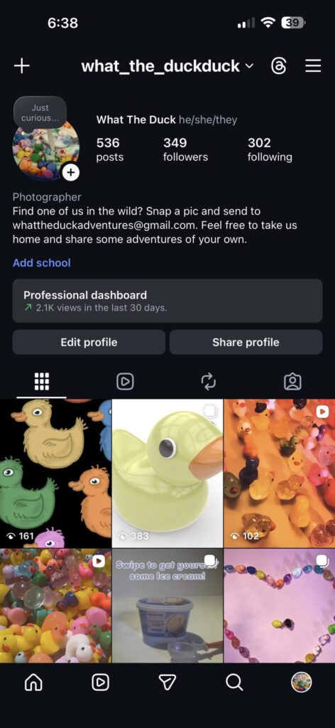 The ducks have amassed over 340+ followers on Instagram, with most usually receiving over 500 views by both followers and non-followers. One instance, where I placed over 450 ducks in one afternoon, the page gained 150 followers by the end of the day!